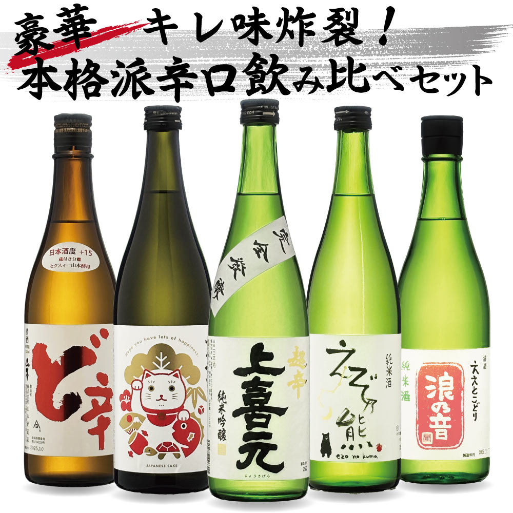 【送料込】キレ味炸裂!本格派辛口 日本酒 飲み比べ 5本セット 720ml×5本 山本 ど辛 八重寿 上喜元 えぞ乃熊 浪の音 地酒 辛口 北海道 秋田 山形 滋賀 辛口 純米酒 純米吟醸